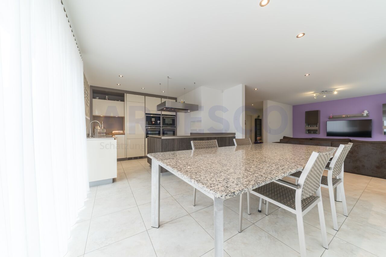 Sie fahren durch das grosse Eingangstor und dürfen dieses wunderschöne Eigenheim bereits von außen bestaunen - ein wahrlicher Wohntraum für Sie und Ihre Familie! Freuen Sie sich auf ein modernes Haus mit hochwertigem Ausbaustandard und auf einen grossen, teils-abgedeckten Sitzplatz an einer zentralen aber doch ruhigen Lage. Ideal für ein Paar oder auch Familien die sich langfristig niederlassen möchten.